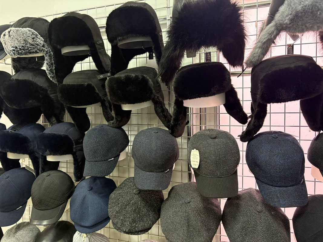 - зимние шапки- ушанки, бейсболки, кепки