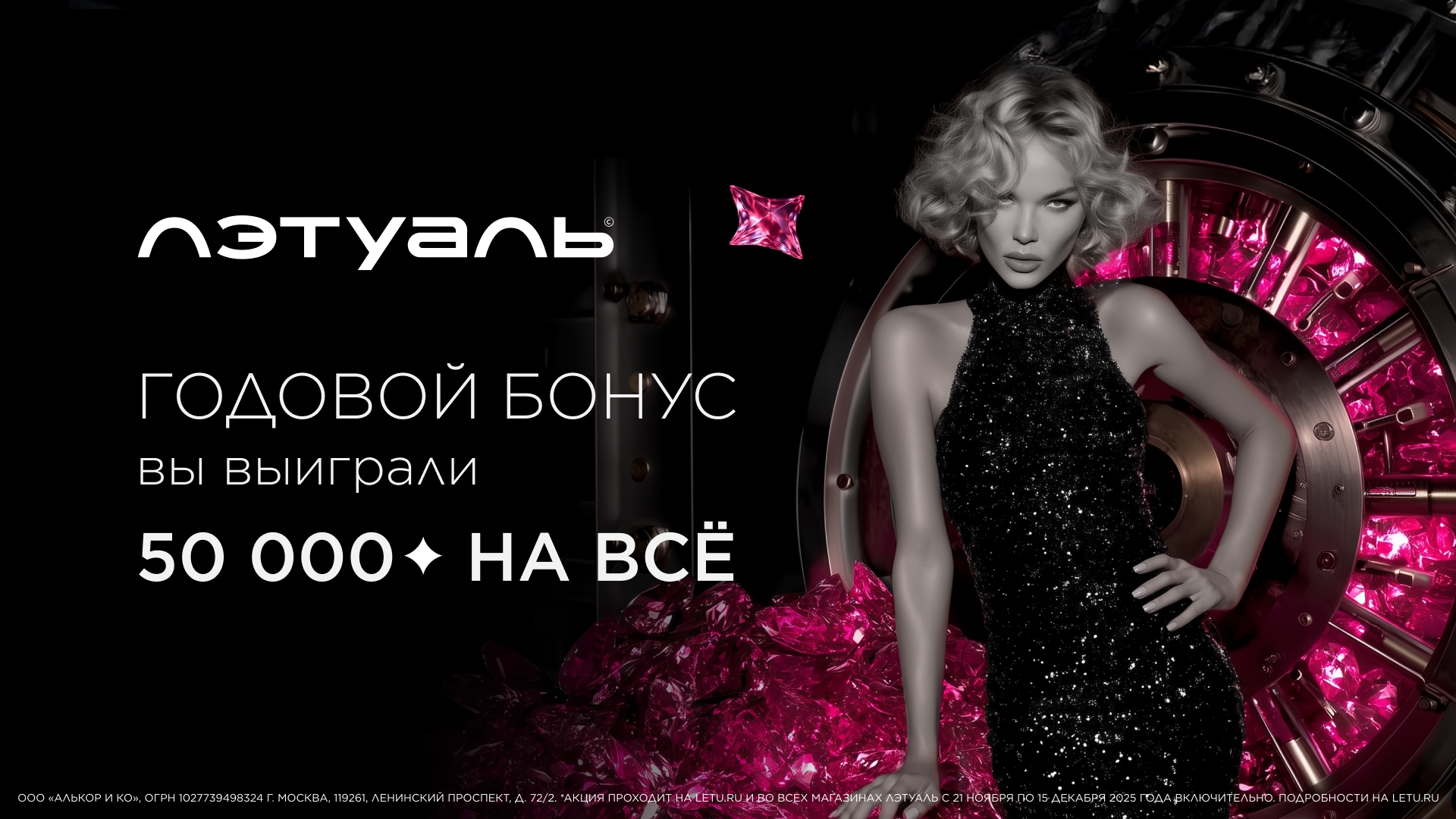Впервые ЛЭТУАЛЬ идет ва-банк – 50 000 бонусов уже у тебя на балансе! Успей порадовать себя и близких подарками с максимальной выгодой! Если ты еще не участник нашей программы лояльности, начислим до 50 000 welcome-бонусов!