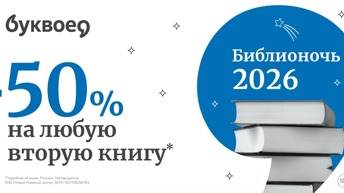 Библионочь приближается, и в Буквоеде происходят чудеса! Слышите? Книжные полки рассказывают секрет: если купить две книги одной серии, то на вторую будет скидка 50%!